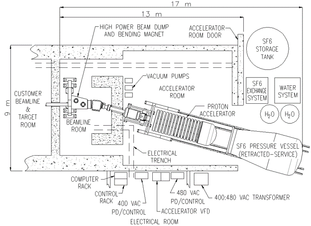 - Proven reliability: Prototype system factory tested for 37,000 mA·hours at 30mA continuous beam, for > 100 hours/month over one year period. Designed for continuous operation with uptime > 98%.